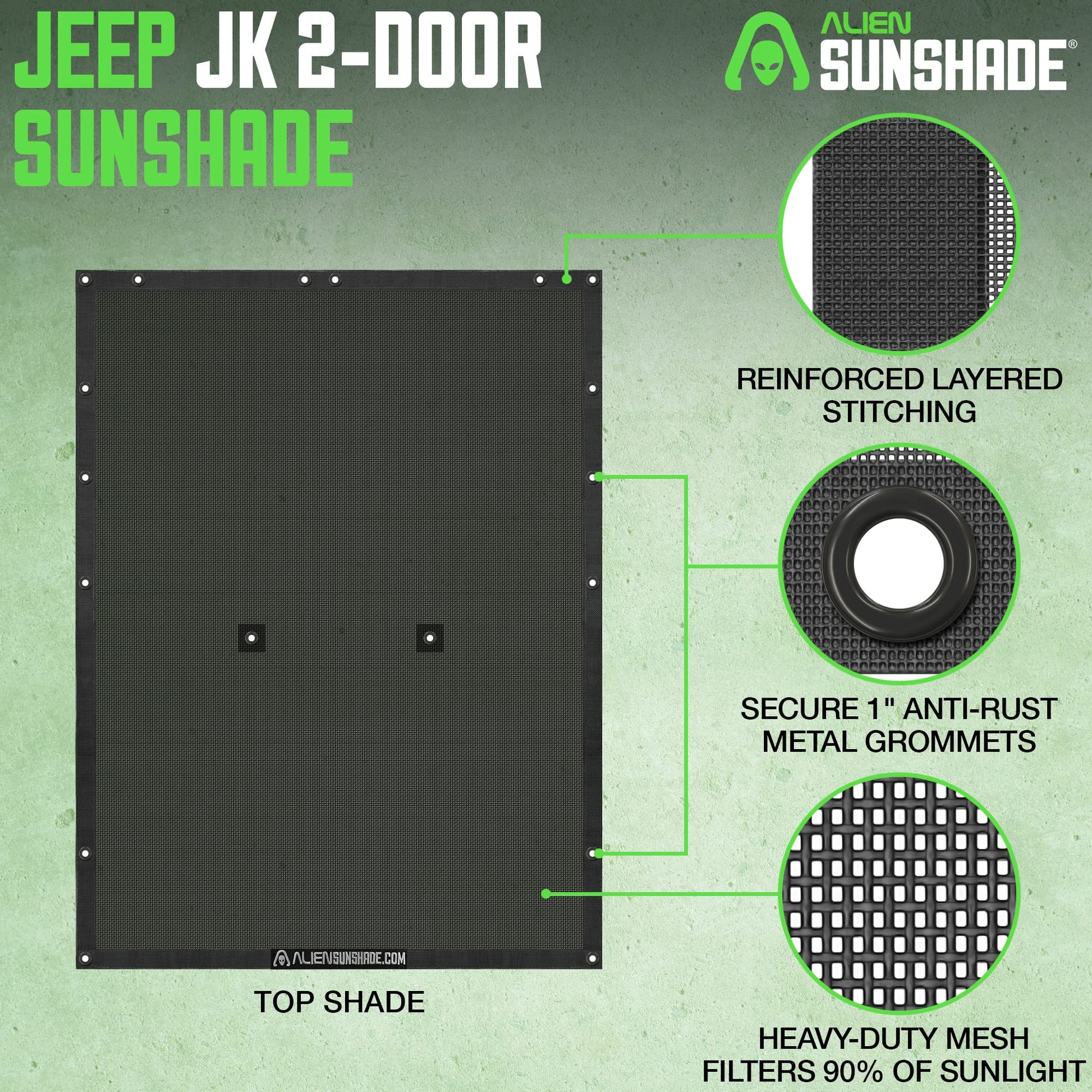 Alien Sunshade Jeep Wrangler JK Black (2007-2018) Full Length Mesh Sun Shade for JK 2 Door - Blocks UV, Jeep Gifts, Wind, Noise - Bikini Jkini Top Cover for Sport, Sport S, Sahara, Rubicon