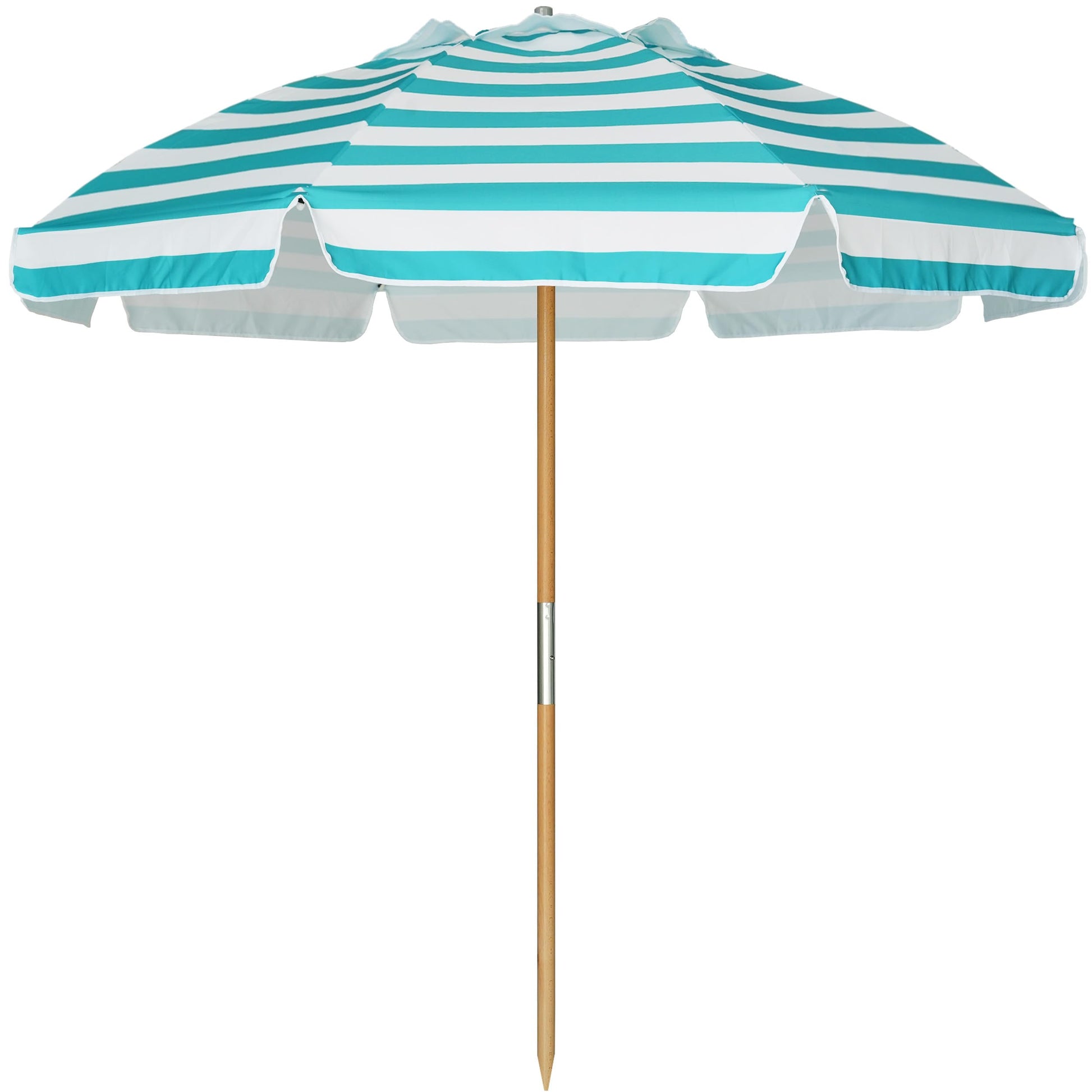 AMMSUN 7.5ft Heavy Duty HIGH Wind Beach Umbrella Commercial Grade Patio Beach Umbrella with Air Vent Ash Wood Pole & Carry Bag Turquoise White