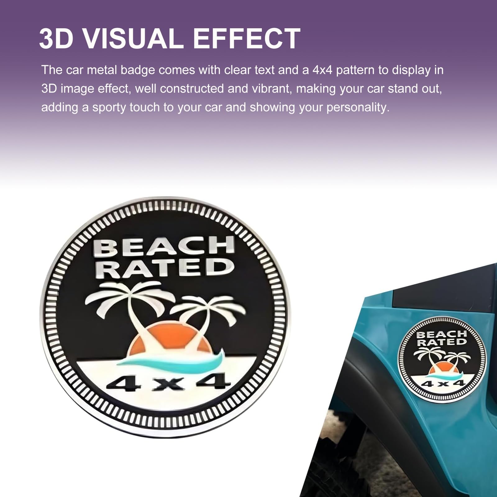 - Personalized Design: Featuring a bold "Beach Badge Rated 4X4" slogan paired with a beach pattern, this 3D metal decal adds a unique, head-turning touch to any vehicle. Perfect for off-road enthusiasts, it showcases personality while celebrating your passion for adventure.