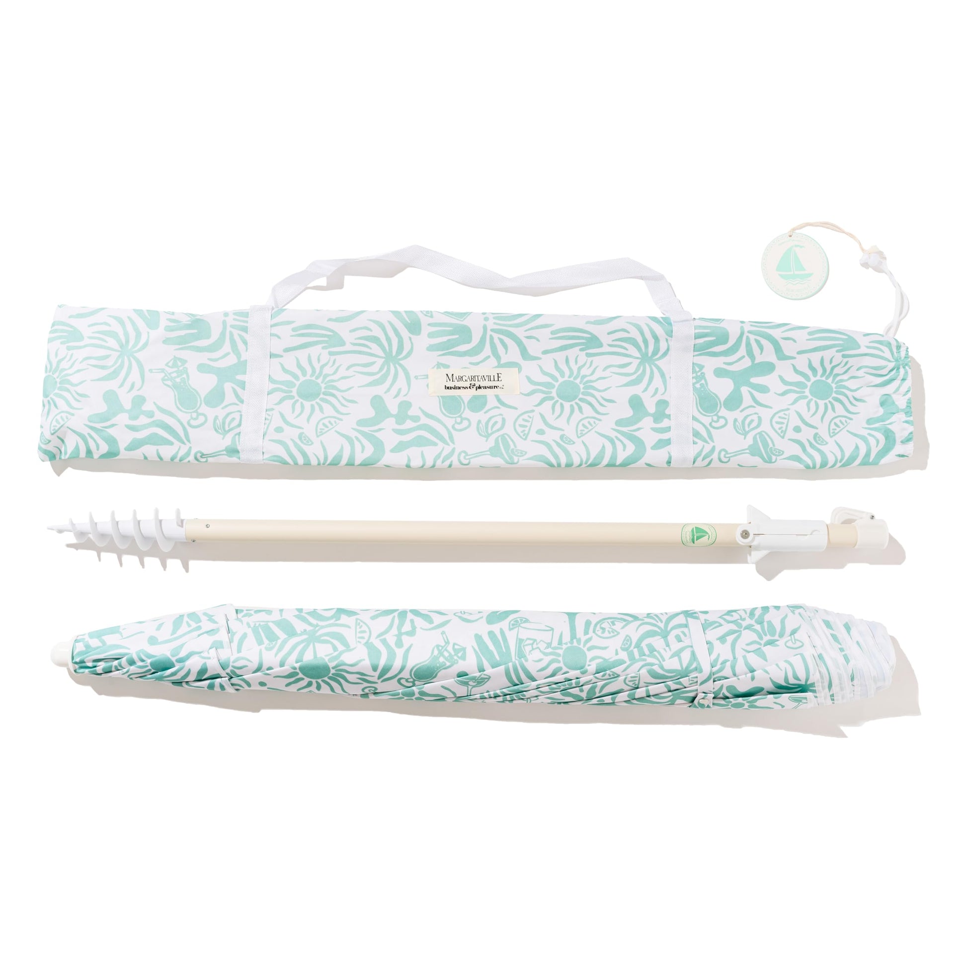 Business & Pleasure Co. Margaritaville Manana Umbrella - 6.5' Beach Umbrella Sand Anchor, 7' Tall Telescopic Aluminum Pole, UPF 50+, Last Mango Green Tiki
