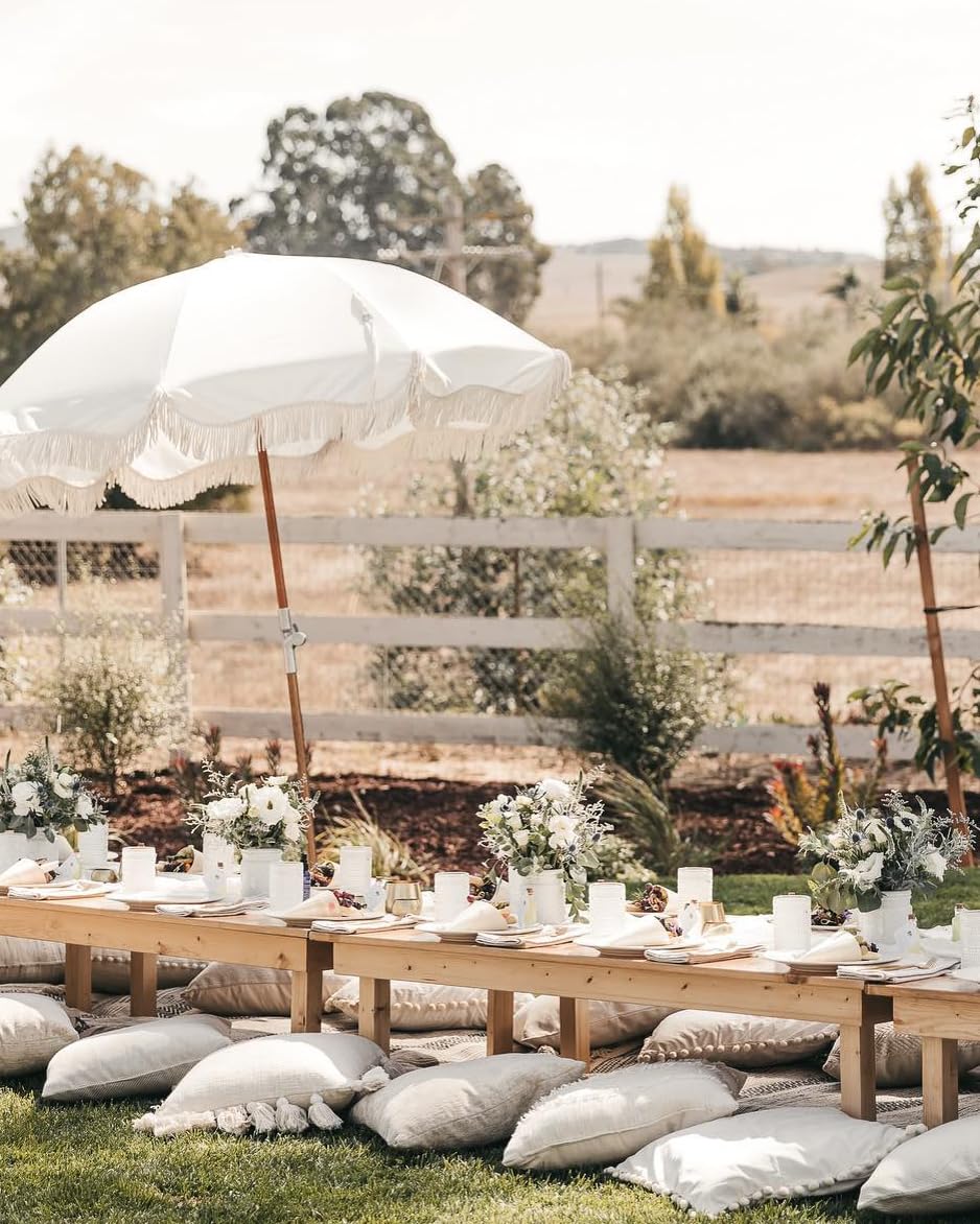 - Enjoy 6' of shade & UPF 50+ protection under the beautiful canopy, decorated in our natural white cotton fringe.