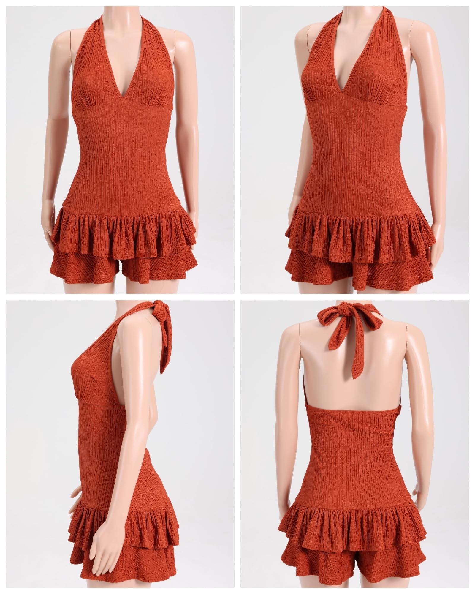 - Sexy Halter Design: halter deep V + open-back style flatters neck/shoulder lines, perfect for vacation/dates