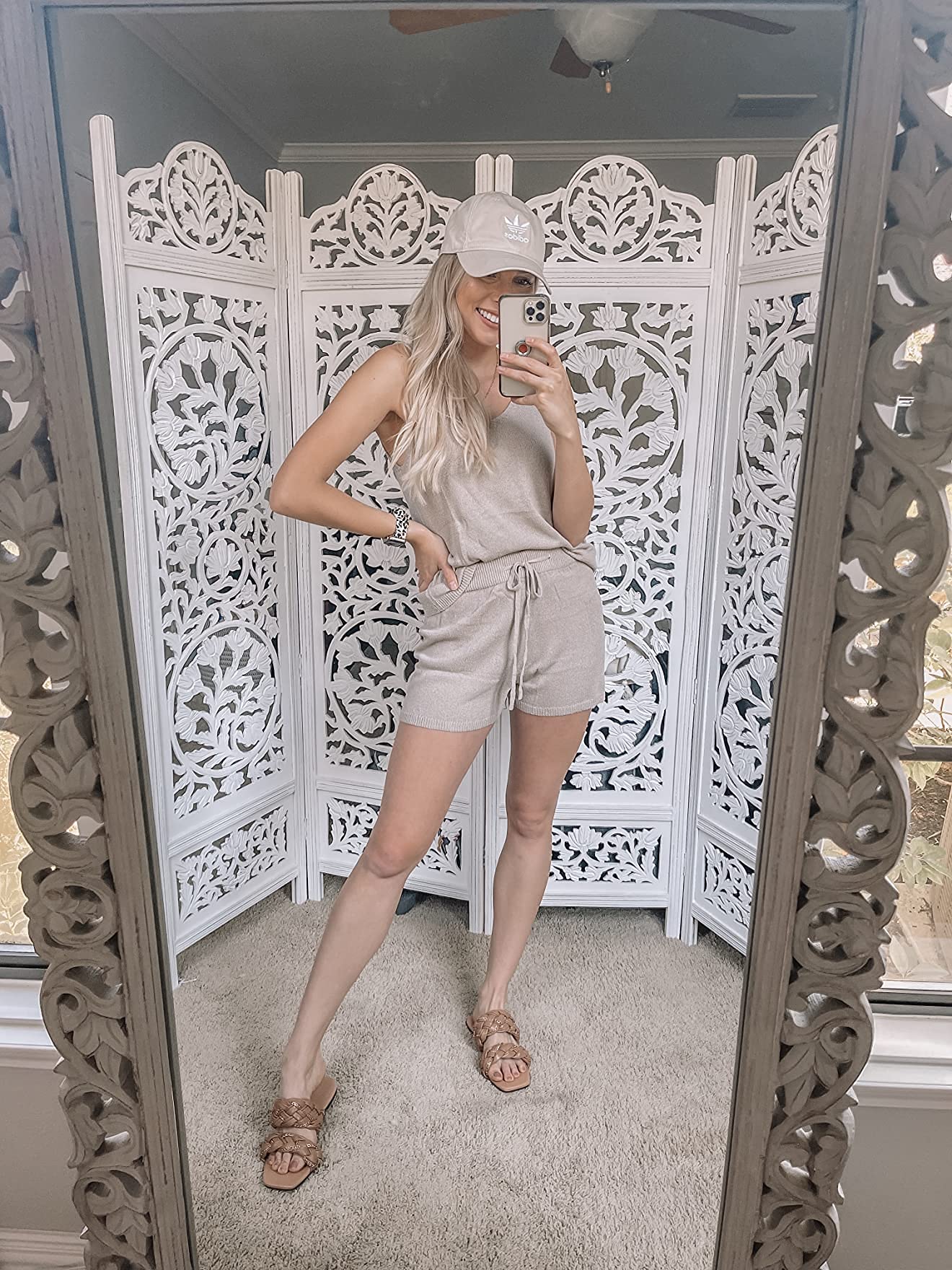 Imily Bela Women's Summer Lounge Sets Knit 2 Piece Outfits Vacation Beach Tank Tops and Shorts Loungewear Pajama Set