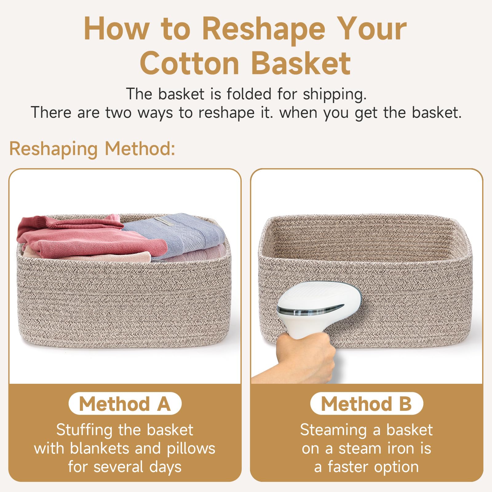 - 【Home Storage】We specially selected classic colors for these rope basket bins. Our rope baskets can be used as fabric baskets and look great in any room. This cube rope storage basket will enhance any room or decor in your home.