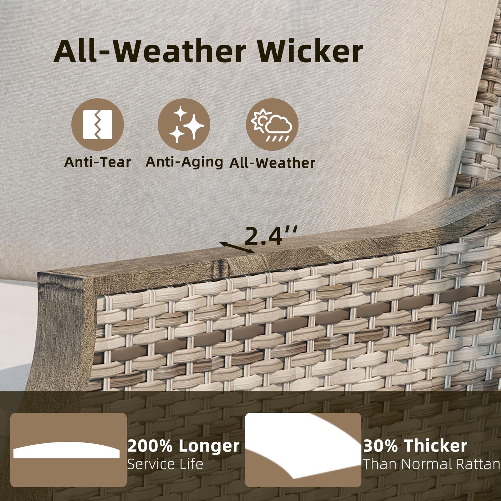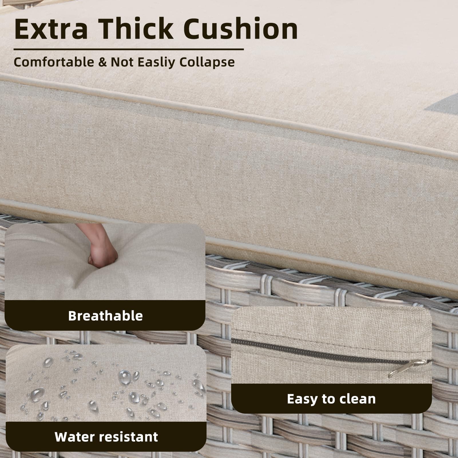 - 【Thick & Supportive Cushions】Sink into comfort with thick high-resilience cushions. Wrapped in premium Olefin fabric, they offer water resistance, UV protection, and long-lasting shape retention—ideal for extended outdoor lounging.