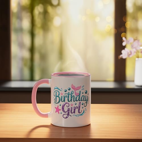Mermaid' Birthday Girl Ceramic Mug, Pink/White
