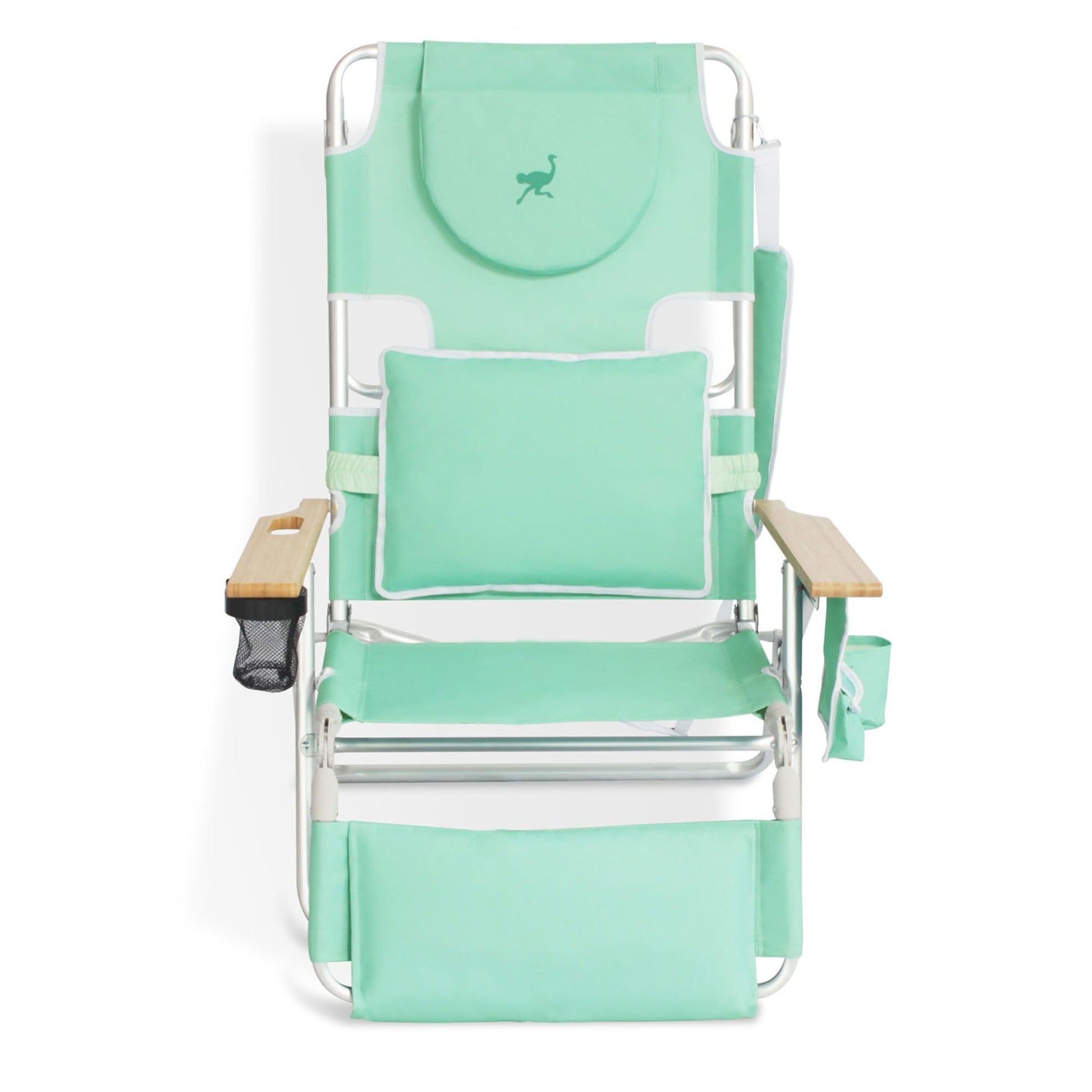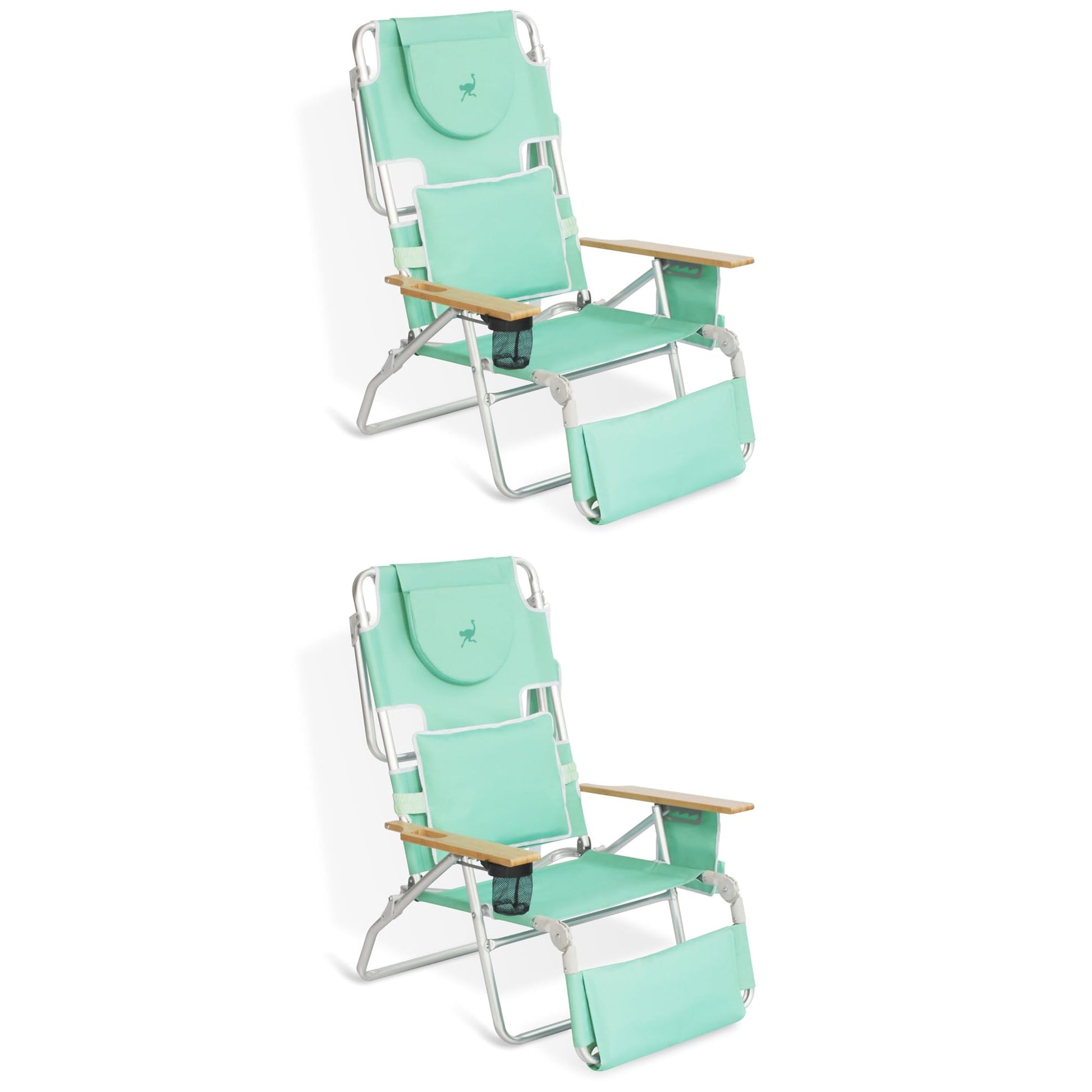 Ostrich Deluxe Padded 3-N-1 Lightweight Portable Adjustable Outdoor Folding Chair for Lawn Beach Lake Camping Lounge with Footrest, Teal (2 Pack)