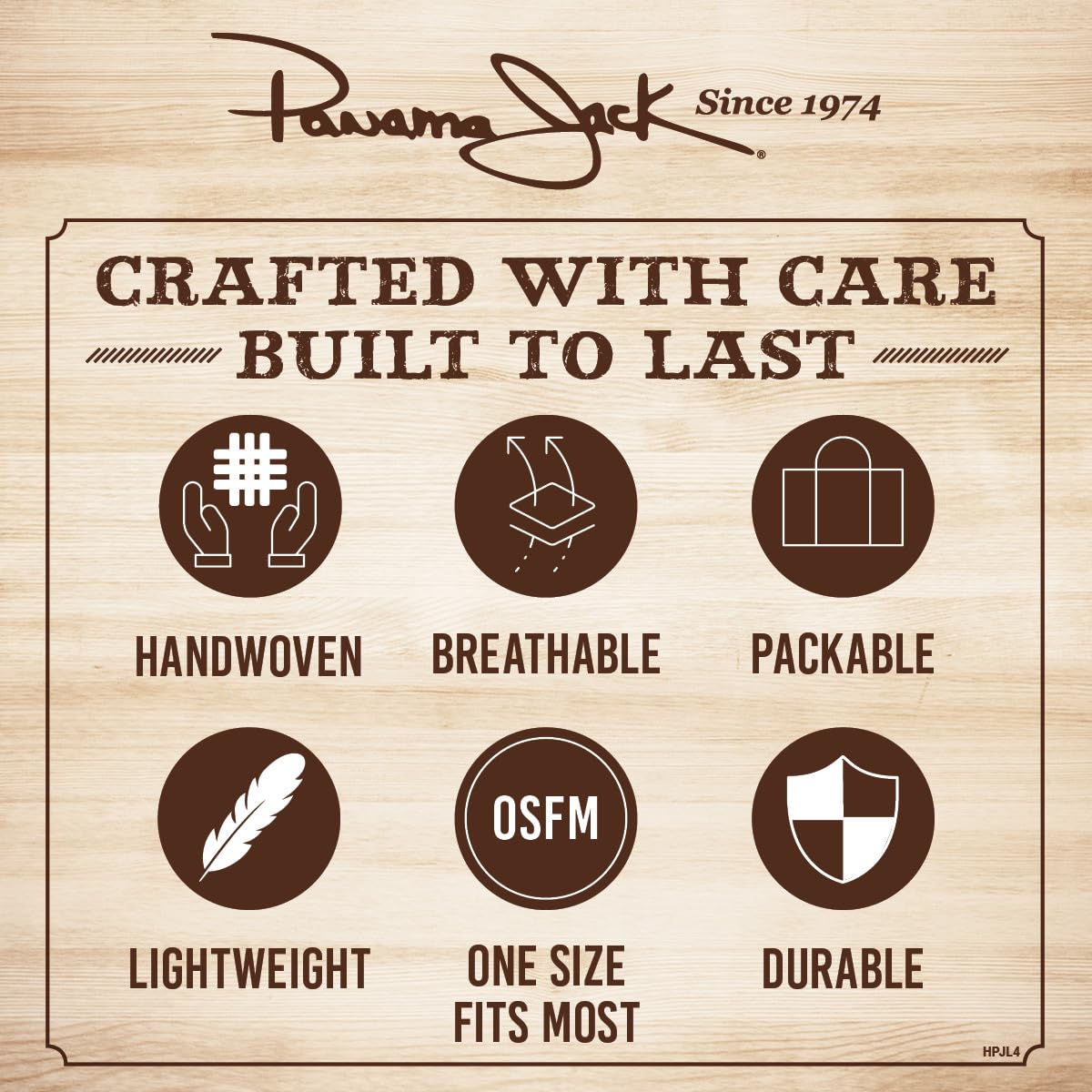 - Crafted out of a crocheted toyo straw material, this Panama Jack women's crush-able sun hat is designed with a matching colored hat sizing tie.