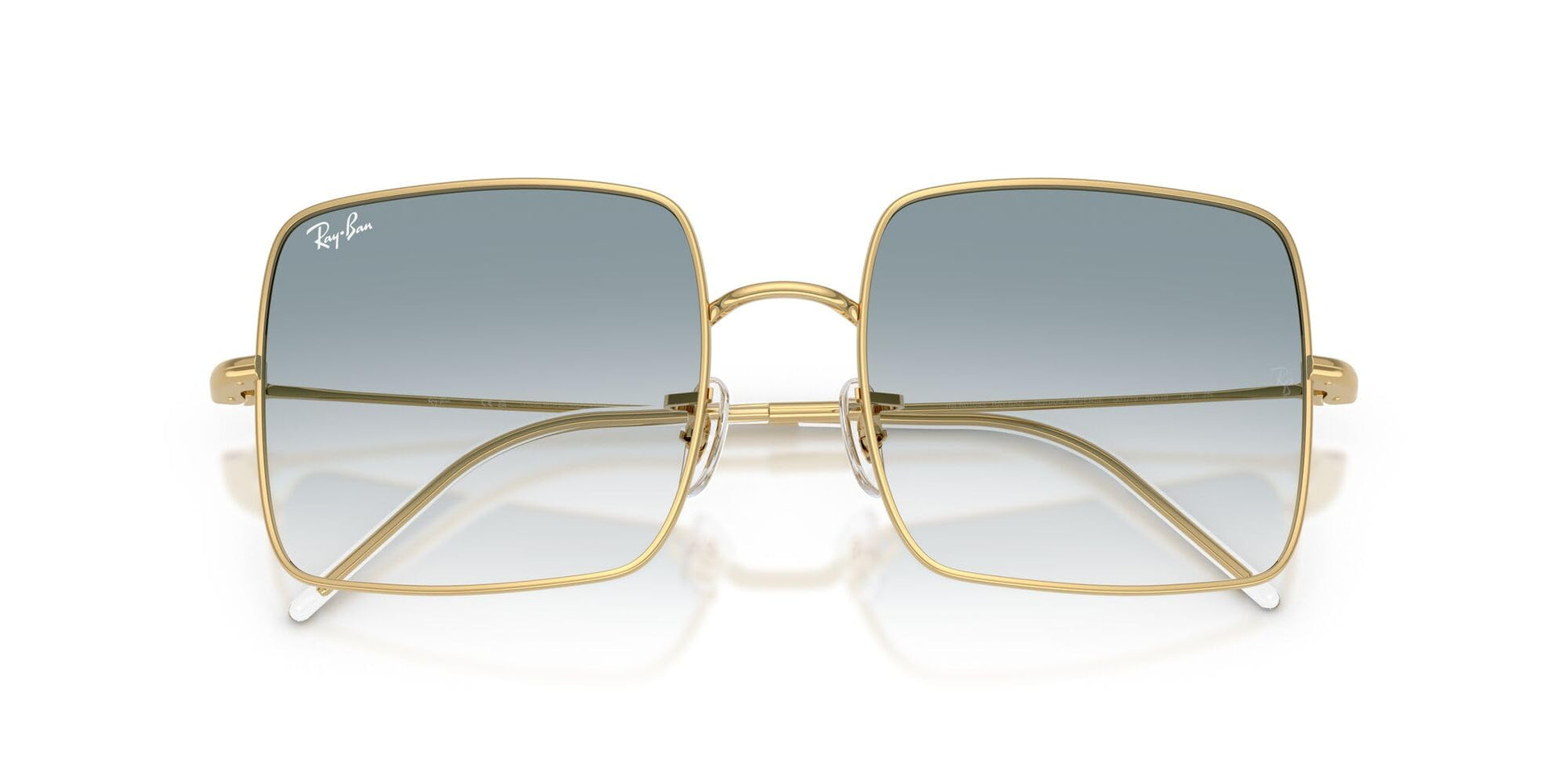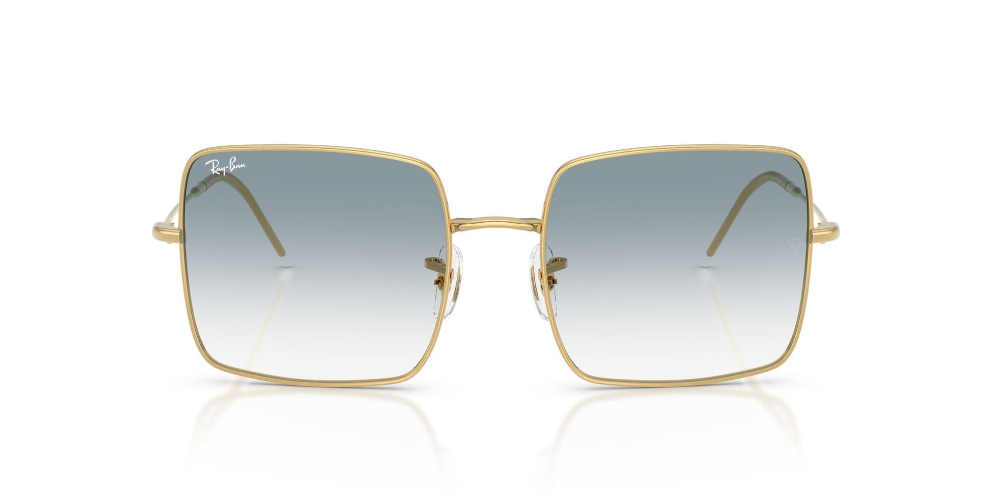 - FRAME FEATURES: RBR0104S Square 1971 Reverse feature a square, gold frame and clear gradient blue lenses.