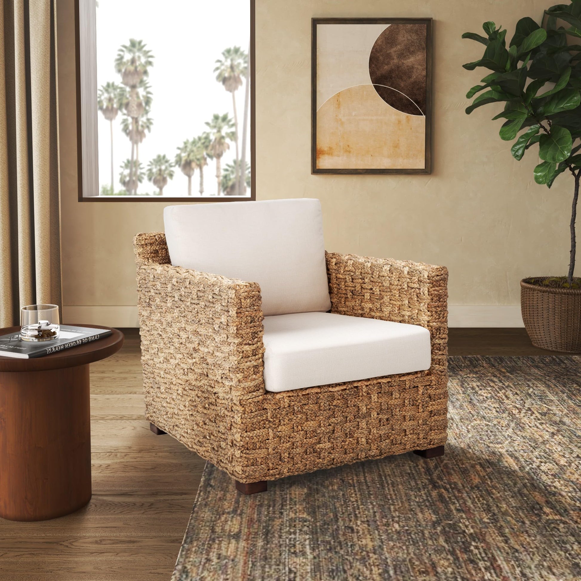 - [DURABLE CONSTRUCTION]: Expertly constructed with sturdy mahogany wood, water hyacinth, and topped with plush beige cushions, this chair is designed to last, offering you hours of comfort for years to come