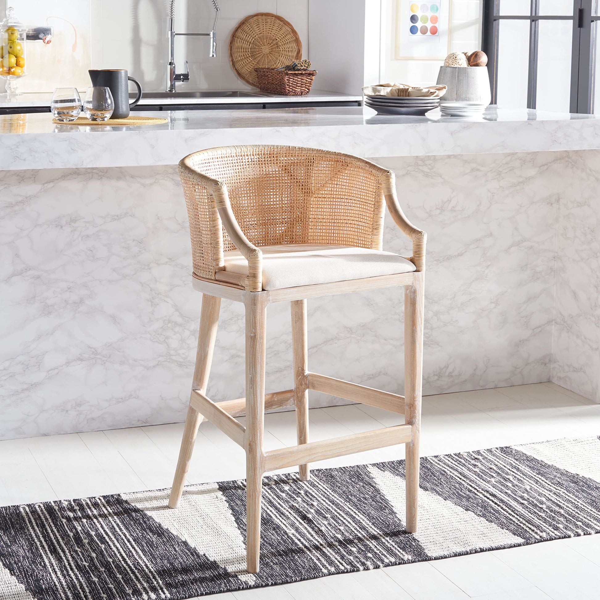Safavieh Home Collection Brando Tropical Coastal Natural Wash Legs Cushion Solid Wood 30-inch Bar Stool (Fully Assembled)