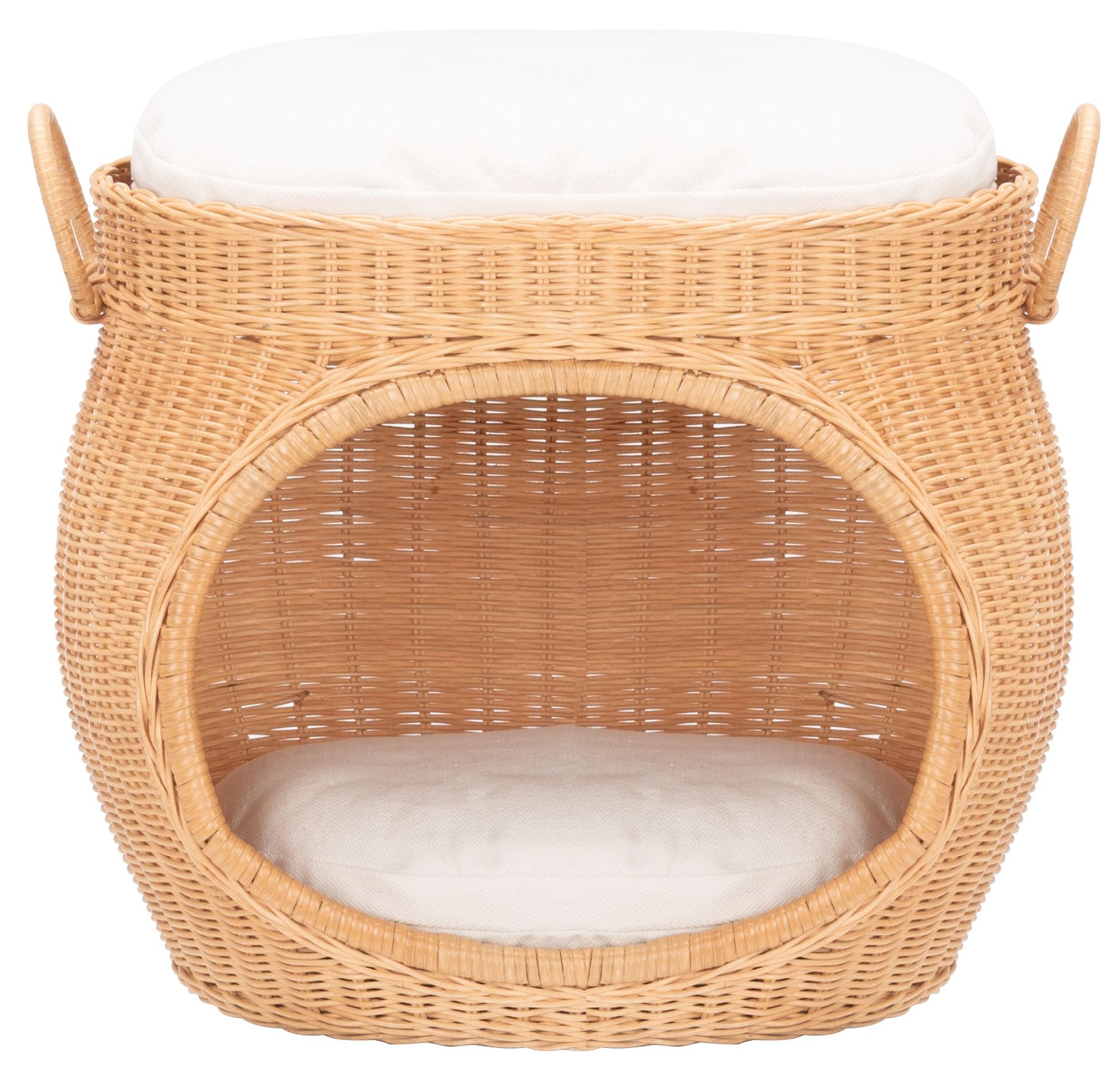 SAFAVIEH Home Collection Faati Honey Brown Rattan Pet Cat Bed with White Cushion, Ideal for Living Room, Bedroom, Entryway (Fully Assembled)