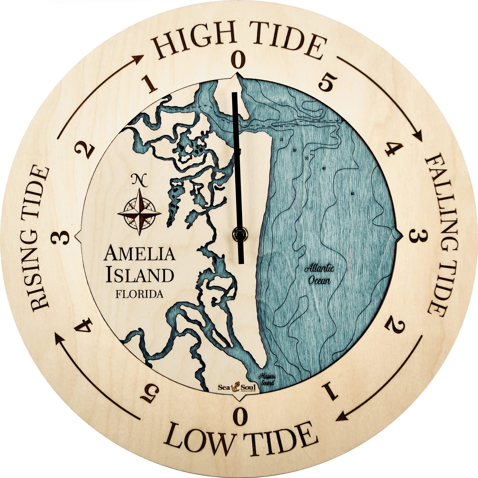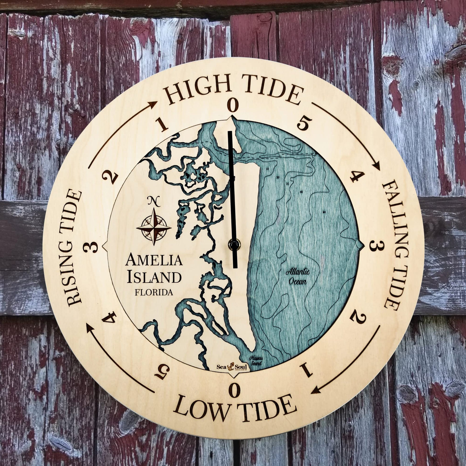- BEAUTIFUL COASTAL DÉCOR – Our Amelia Island 3D nautical chart Tide clocks are the perfect complement to any coastal, beach or cottage décor. Whether you lean more toward Coastal Casual or a Modern Seaside Retreat, our Tide Clocks are offered in 5 different accent options and two water colors to fit every coastal style!