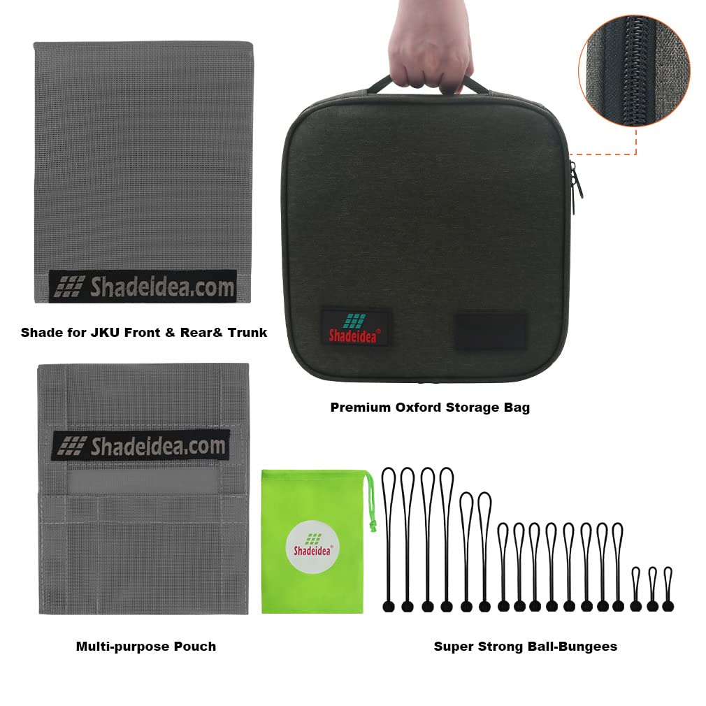 Shadeidea JK Sun Shade Top Compatible with Jeep Wrangler JKU Top Sunshade Soft Mesh Roof Cover (2007-2018)- Wind Noise UV Blocker -10 Year Warranty -4 Door -Gray -Front&Rear&Back (Full Length)