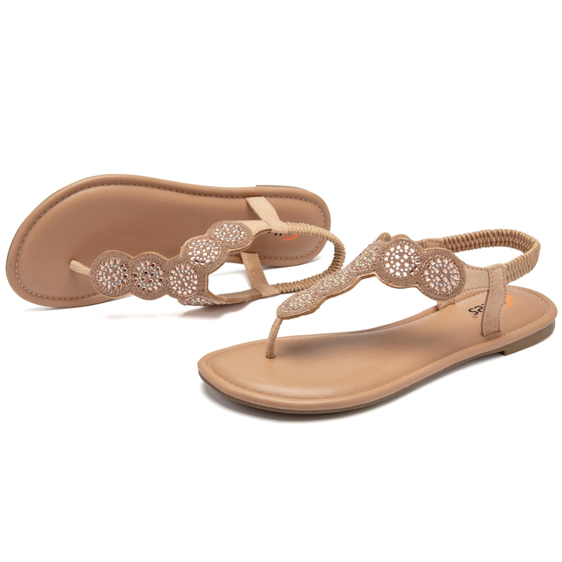 Veittes Women's Bohemian Bling Flat Slide Sandals - Casual Summer Thong Sandals with Rhinestone Decor, Rubber Sole, Lightweight & Comfortable Ankle StrapThong Summer Sandals.(2307004,GD/MF,11)