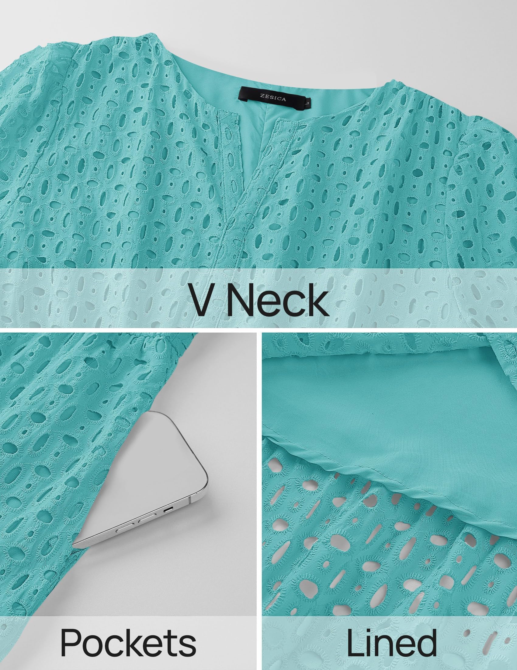 - Our sexy long dress features a v neck, short sleeves, elastic high waist, eyelet embroidered design, solid color, flowy a line cut, no zipper, two side pockets, ankle length looks more elegant